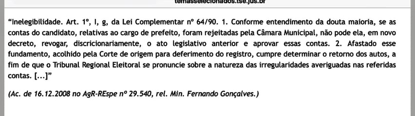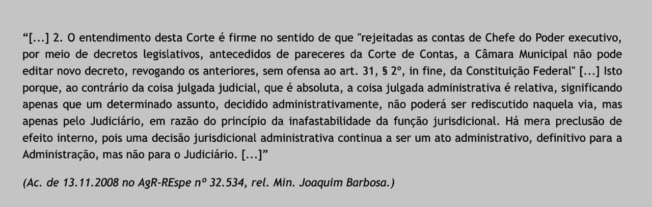 Com isso, Odilon acredita que que justiça, que tinha recebido pedido da Procuradoria Eleitoral para lhe cassar o mandato por ter tido suas contas condenadas, acatará uma decisão de um câmara municipal, convalidada pela justiça, retroagindo uma decisão anterior, contrariando toda uma jurisprudência jurídica, como segue abaixo: